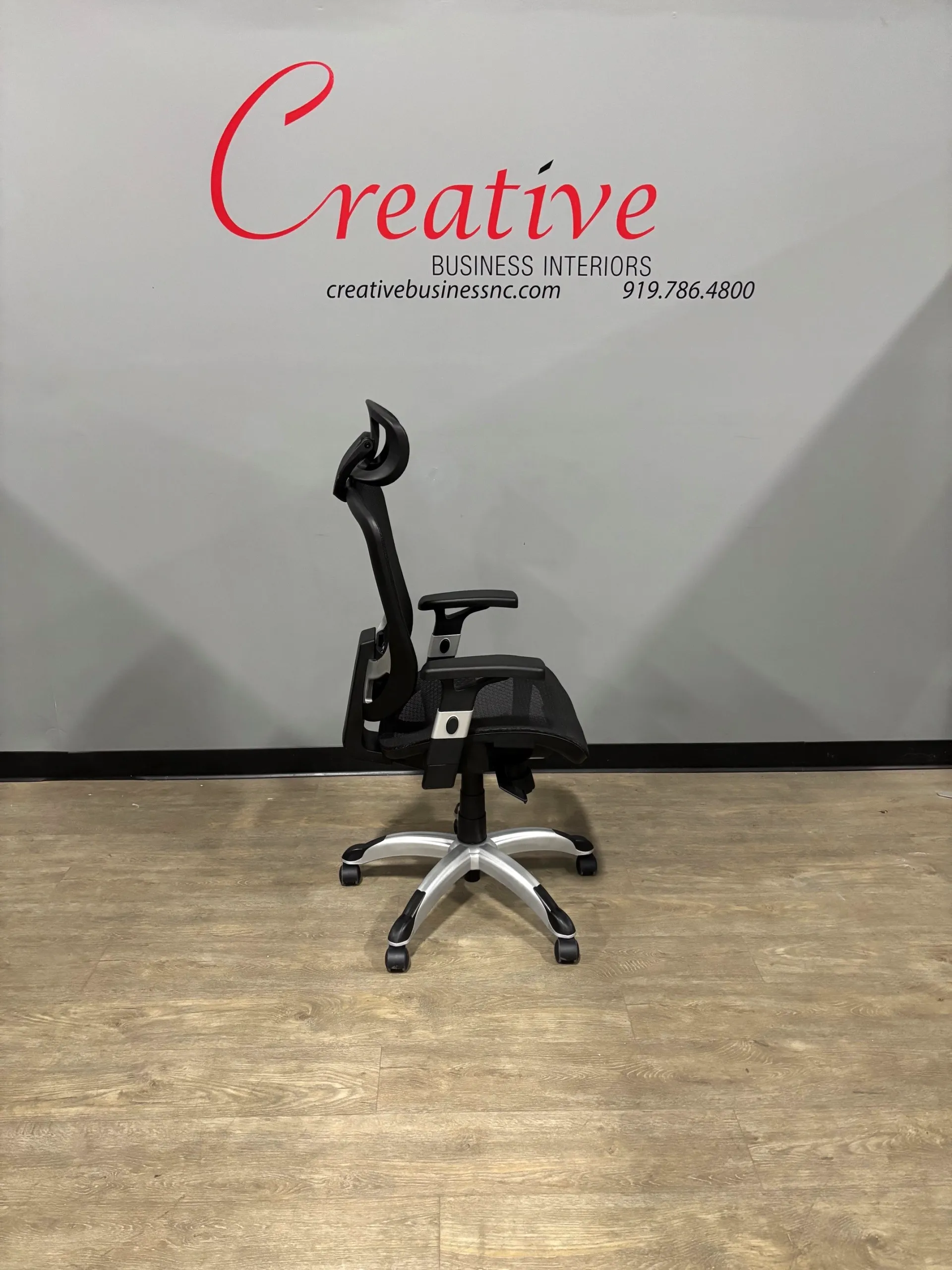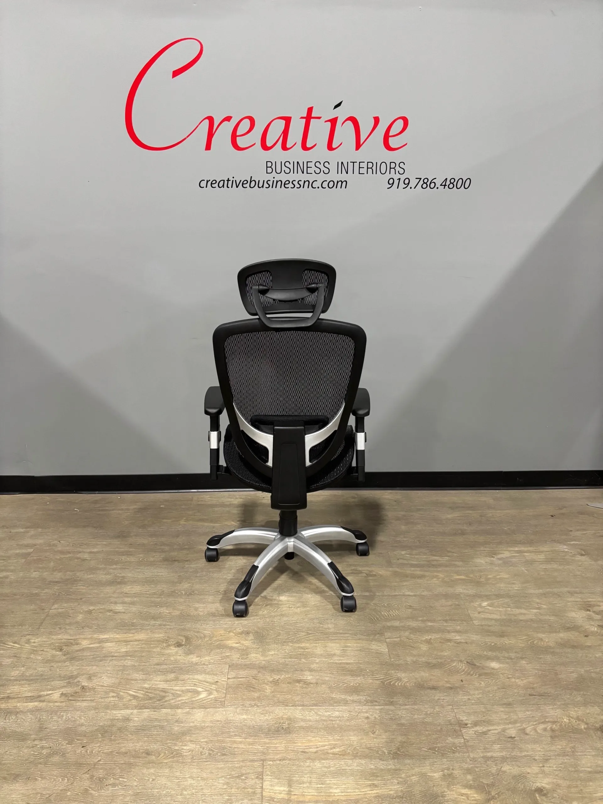 Hyken Task Chair with black seat, mesh back, and head and lumbar support.