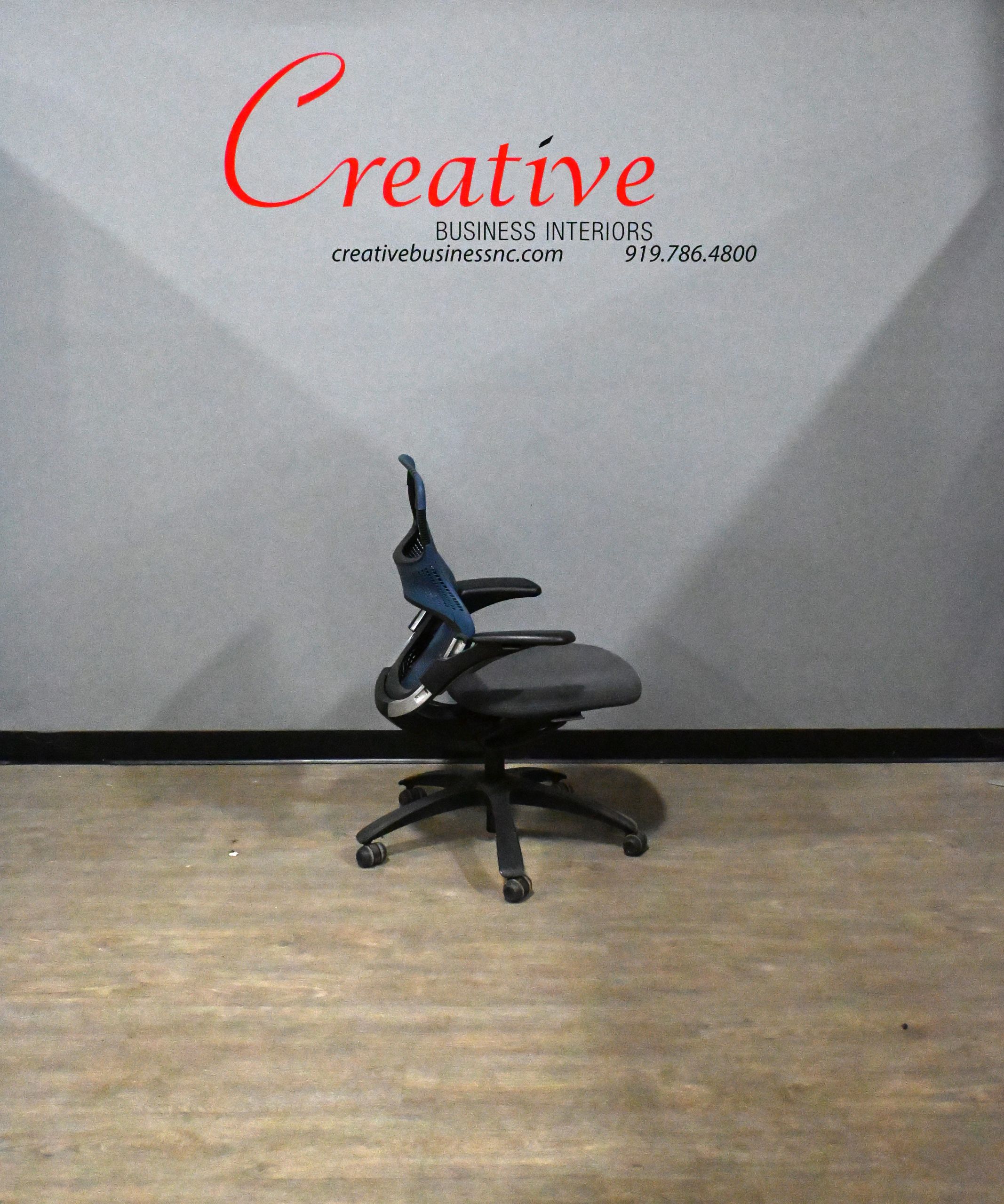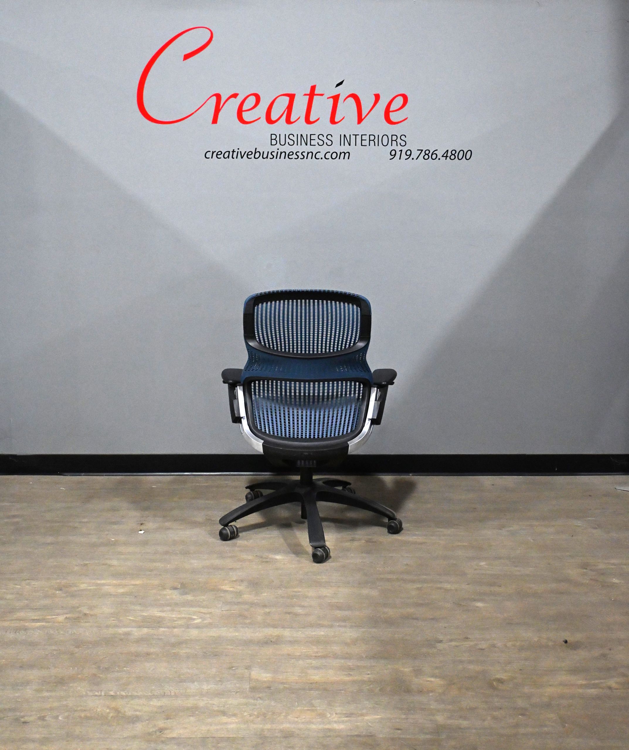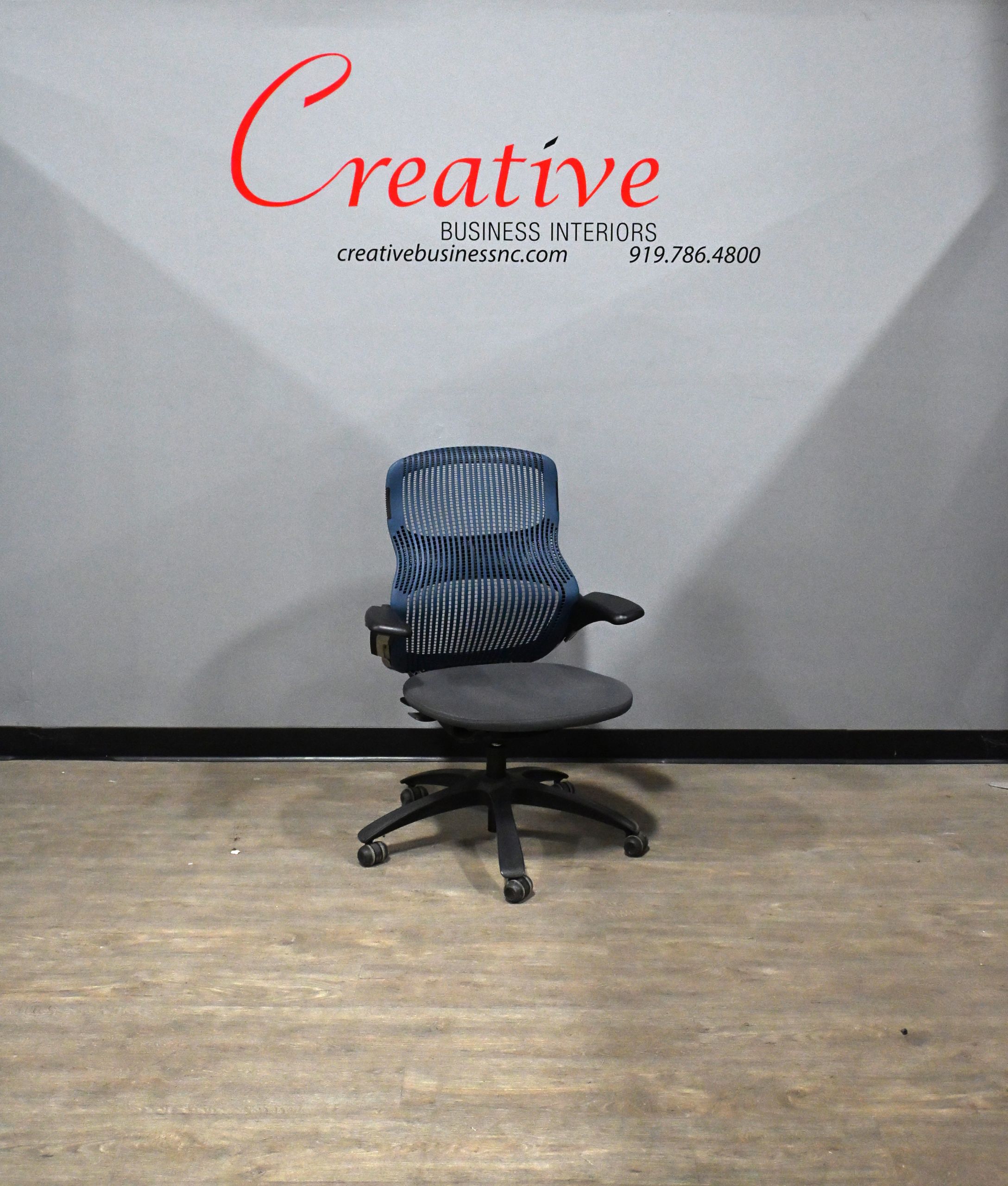 Knoll Generation Task Chair with gray fabric seat and blue flex back.