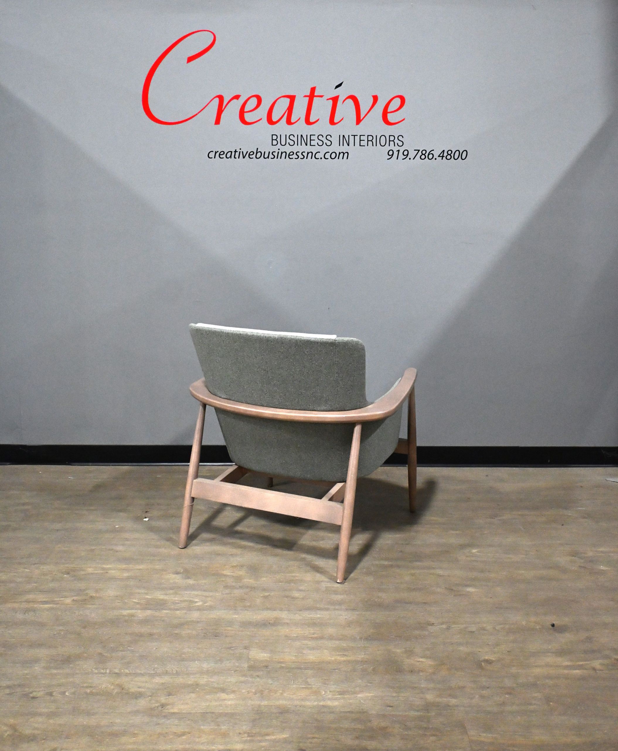 National Hobsen Lounge Chair with light gray fabric body (two-toned) and light wooden frame.