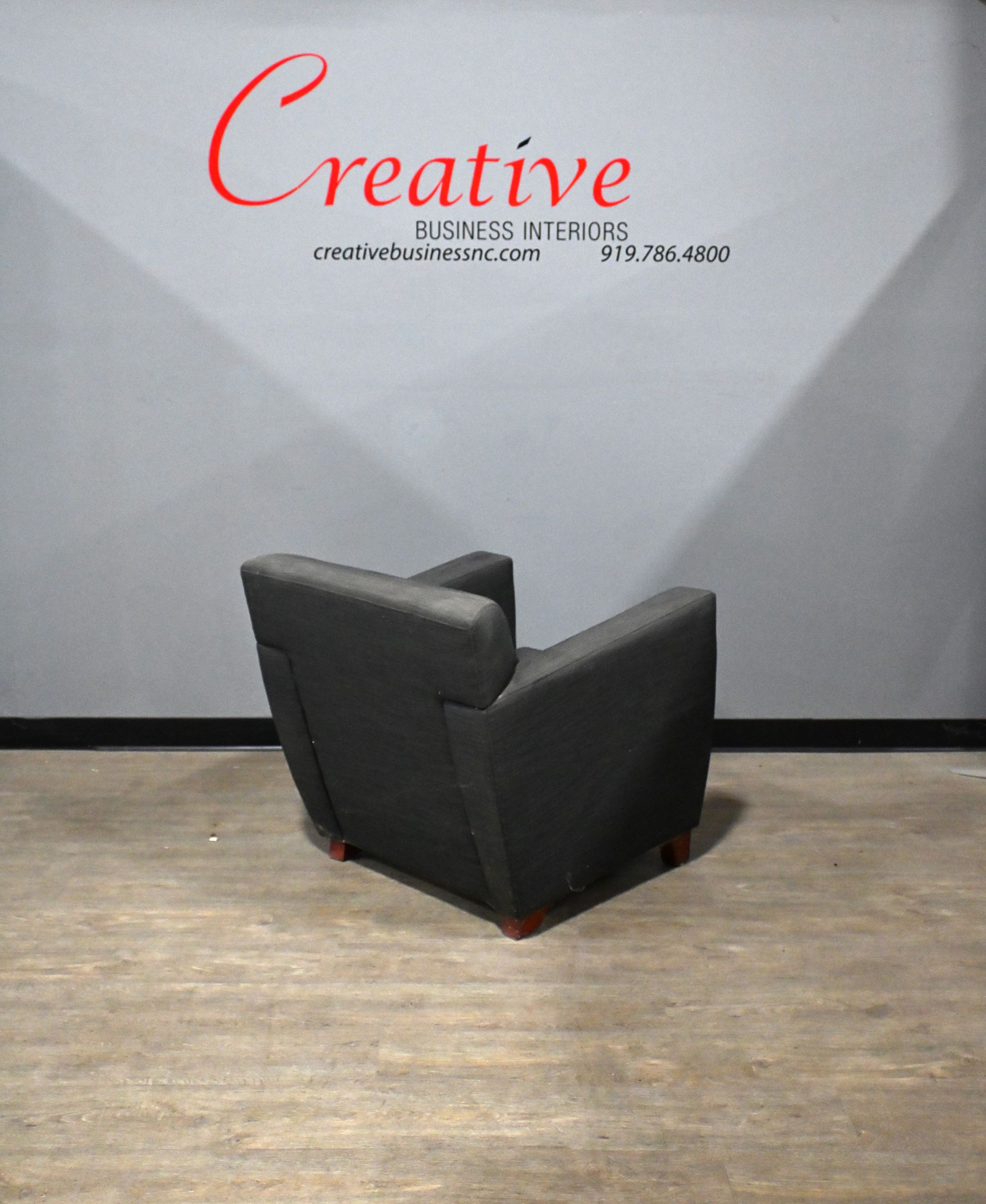 Office Star Lounge Chair with black fabric body and wooden legs.