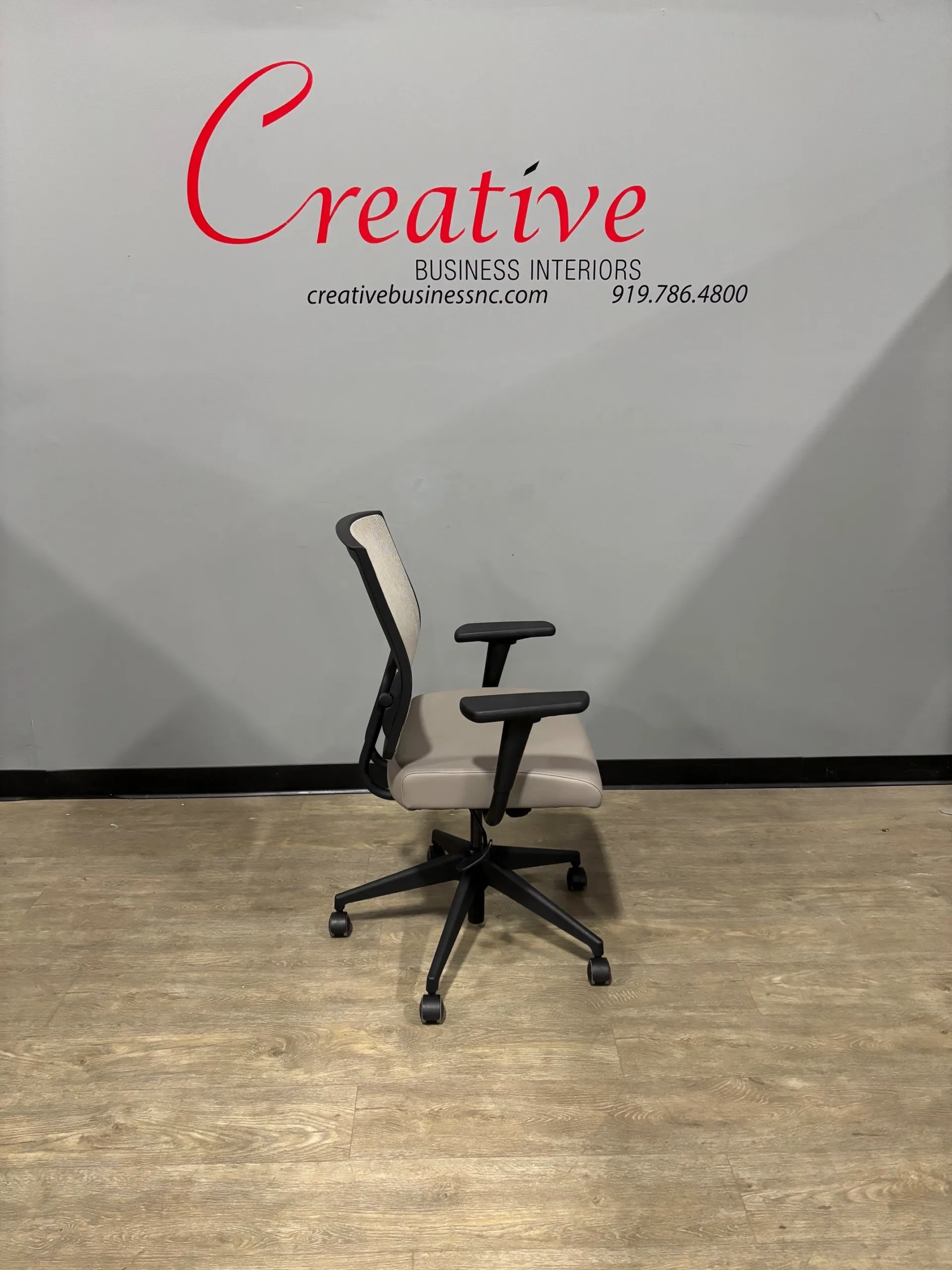 SitOnIt Focus Low-Back Task Chair with gray vinyl seat, mesh back, and black frame.